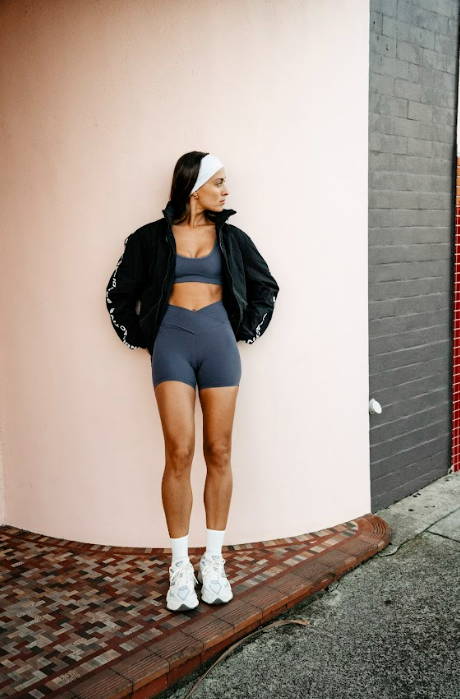 BASE SQUARE NECK CROP, BASE V LEGGINGS, BASE LONGLINE BRA, BASE 9CM BIKE SHORT: MOCHA